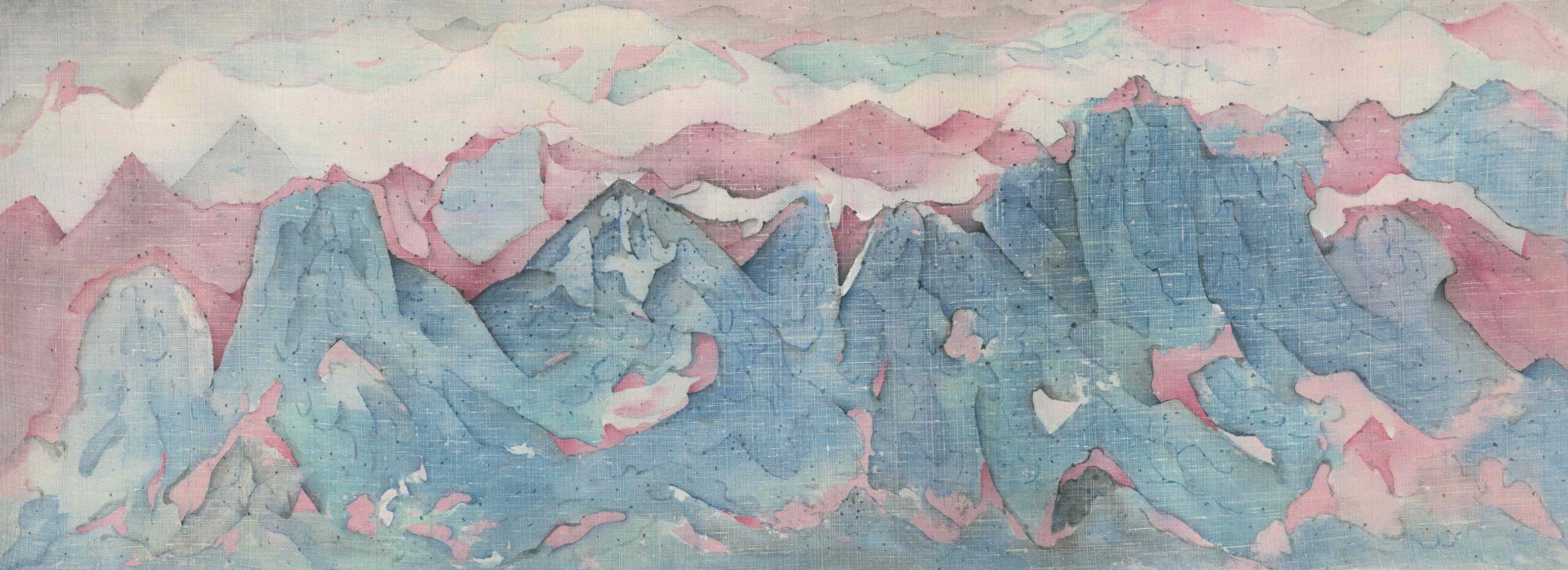 1984年生於山東青州,楊新收對山水畫有其獨到的理解。他作畫先大膽潑墨,淋灕酣暢,待墨、色、水交融到一定程度,再將其收拾整合,化零為整,最後深入刻畫細筆勾勒,可謂膽大心細,作品畫面保留了傳統山水畫的意境,亦不乏現代審美趣味。他畫的常是「空山」——沒有人,沒有樹,沒有瀑布。而是以純粹的自然景觀營造出「世外之山」的感覺。你甚至不能推測出這是古人的山,還是今人的山。它突兀、孤冷地出現,呈現絕對的靜止。他希望當觀眾經過作品時,哪怕只有一秒,也能當場留下一個「枯寂性」的印象,使之成為所有人目光的著落點。