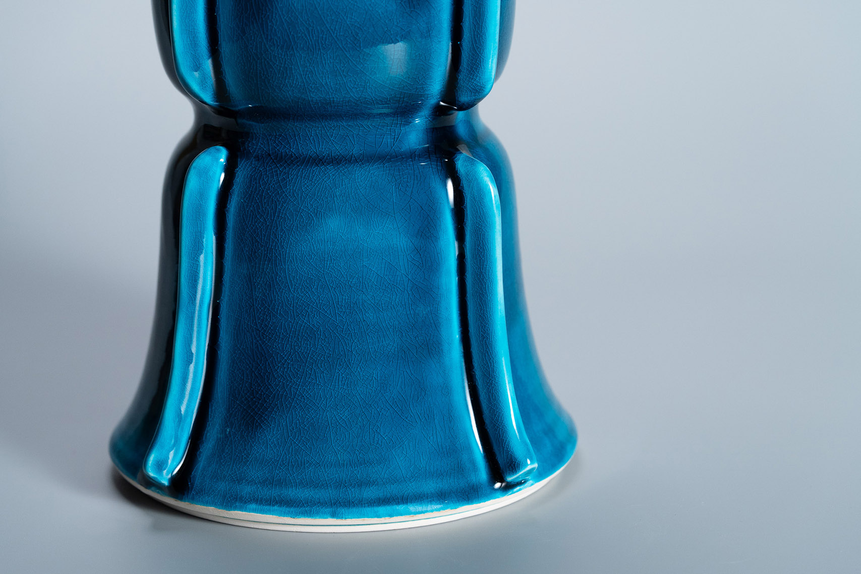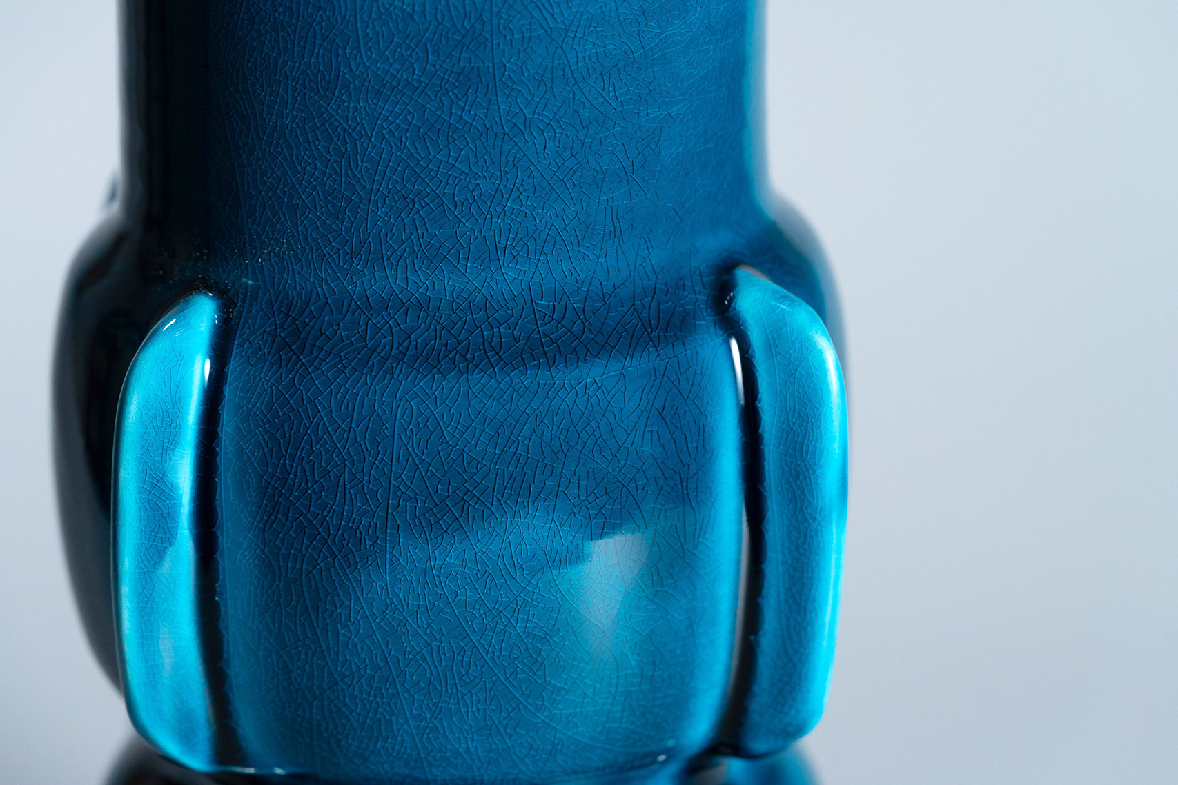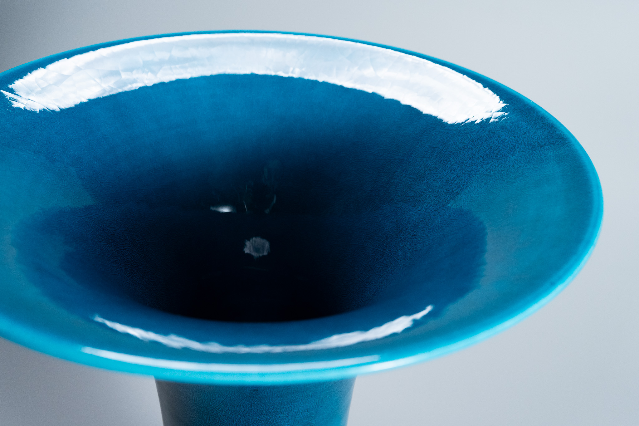 藍釉:藍色釉包括霧藍、灑藍、天藍、翠藍、寶石藍、抹藍、祭藍等。最初的低温釉出現於唐三彩當中,到了元代燒成了高温藍釉瓷。明代宣德的藍釉主要有寶石藍、祭藍等。