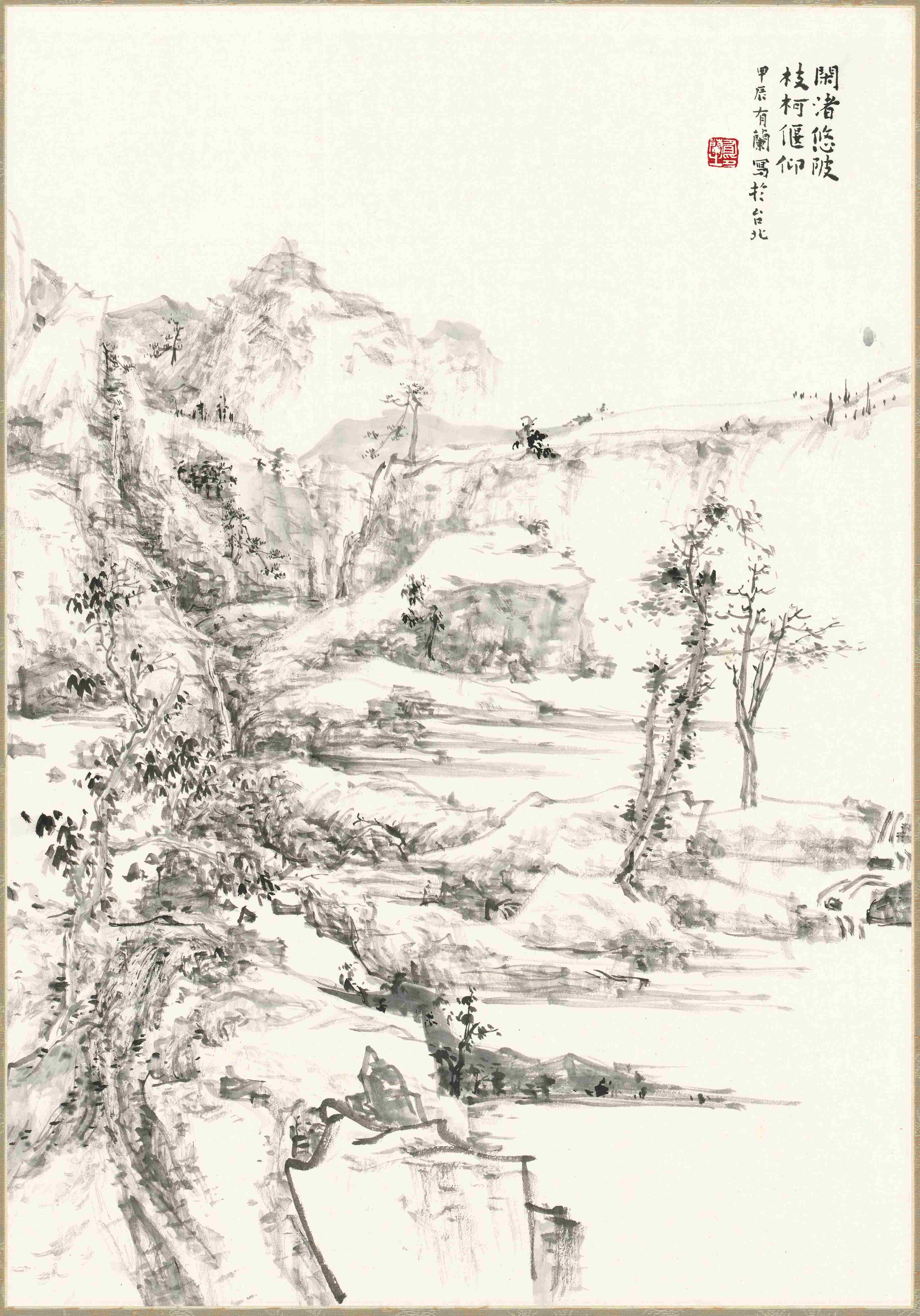水墨之「閑」,在於意趣的從容自在,筆意不受羈絆,隨勢而行,天然自成。此作以閑適之心,書寫畫中閑境。緩渚平坡,波水澄淨,白石鳥道蜿蜒其間。筆觸疏淡,墨色清遠,錯落的疏林雜木,映出天地的寧靜與簡遠。隨筆墨生發的閑逸,在遊戲間,勾勒出散澹的悠然之境,對話古典水墨的精神價值。