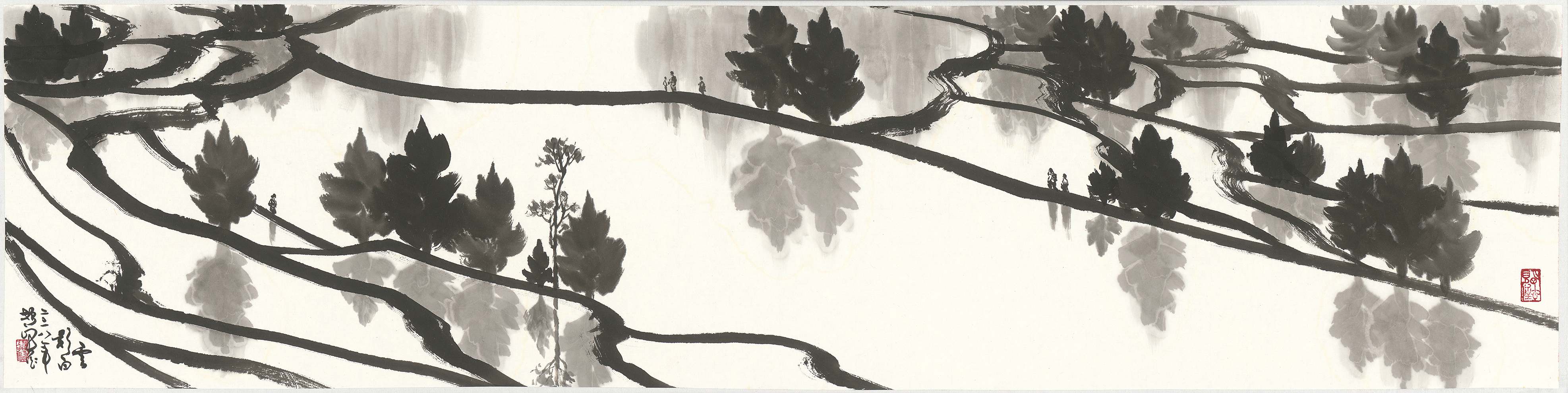本作取材自雲南元陽梯田,每逢冬季稻田收割後正養田之時,阡陌緃橫,水平如鏡,藉田埂交織,變化萬千之形,營造水中天空靈之境。