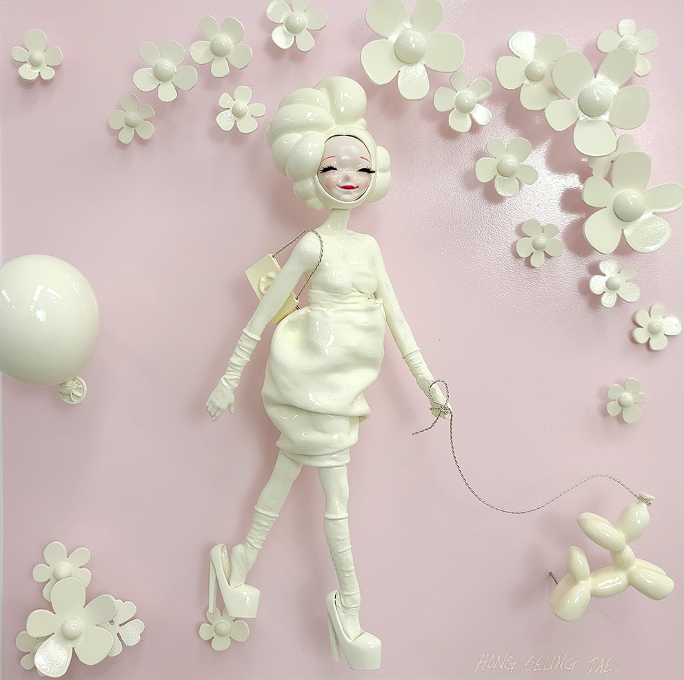 【作品介紹】廣受矚目的超流行藝術家,作品在首爾、大邱、釜山的展覽和藝博會中幾乎完售。原擅長超寫實人體雕塑,後轉向更受歡迎的超流行藝術風格。女性形象以韓國古代包頭為基底,融合現代女性自信風采,風格獨特兼具個性和普普藝術元素,堪稱超流行藝術代表
