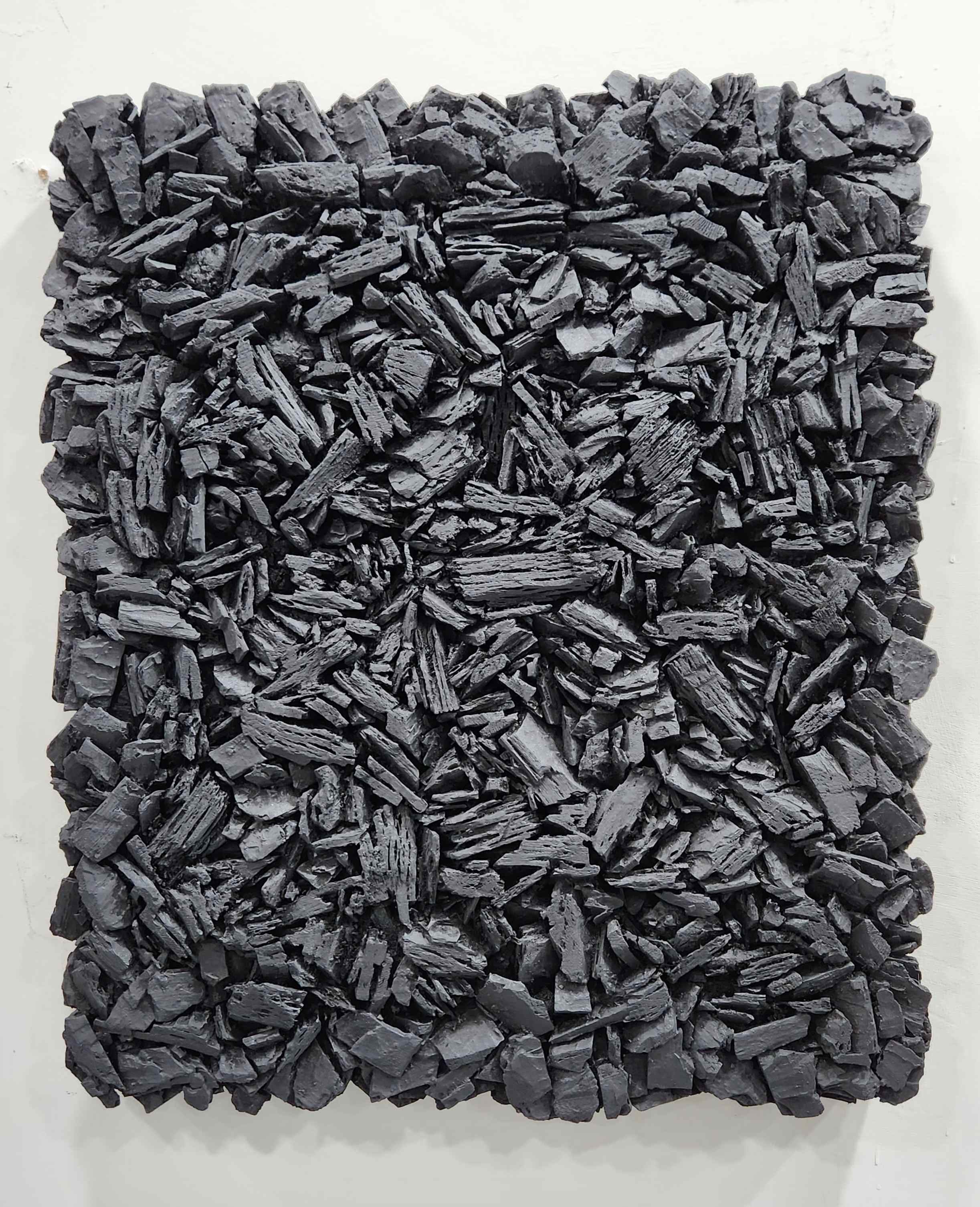 - 簡介: 藝術家金英壽告別了長期的繪畫創作,並將這片土地上被遺棄的存在,作為我們生活中的另一種形態來記憶。藝術家創造了泥土的畫面(平面),木炭與泥土的平面,以及僅由木炭構成的平面。金英壽認為我們的生命並不是能夠被看見或觀察到的東西,而是以活著的人的自我感應方式來體驗的,即作為一種情感(pathos)的現實來表現自我。我出生在這個世界,作為一個人、作為一個女人這些歲月是快樂與悲傷的歷史,是夢想與傷痕的沉積物。當我的生命結束時,它們將變成一把無機物質氧化成為什麼都不是。這個世界上所有被氧化並無數散落的東西,都是昨天曾經生活過的你和我,我們的痕跡。腳下被丟棄的,僅僅是被遺忘的東西,但它們卻是無數生命的記錄,永遠不會消失。 作品中使用的材料包括顏料、混合的泥土與介質,以及原始形態的木炭碎片。這些材料在畫布上乾燥時會形成裂縫。裂縫本身形成了內在的符號,這就像是一種自發的、 主體性的語言行為的手勢。整個畫面就像大地或海洋一樣,承載並接納一切,而散落 的木炭碎片則是內在於無意識中的經歷、記憶、欲望與感性塊狀物,從視覺上來看,這些碎片擴展成島嶼、岩石、流散等的象徵。金英壽喜歡通過使用被遺棄的木炭碎片和泥土來見證那些曾經燦爛生長,最終回歸泥土的事物。