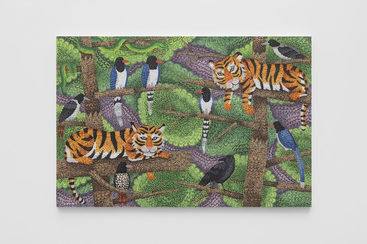 Untitled (crow, greater green snake, tiger, red billed blue magpie, silver oriole)