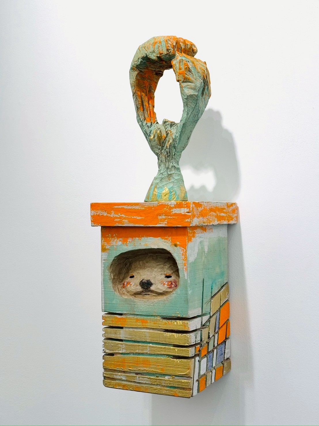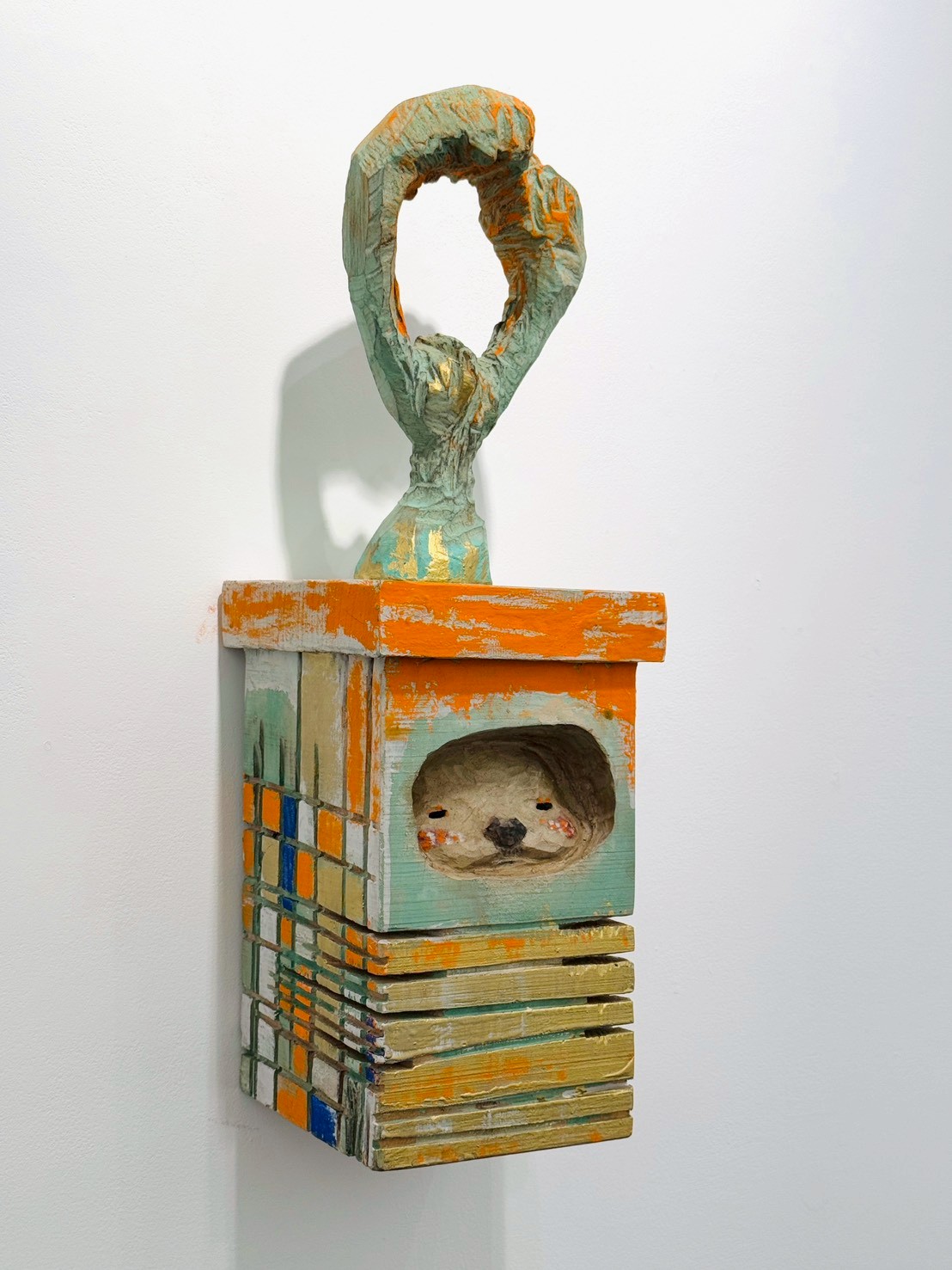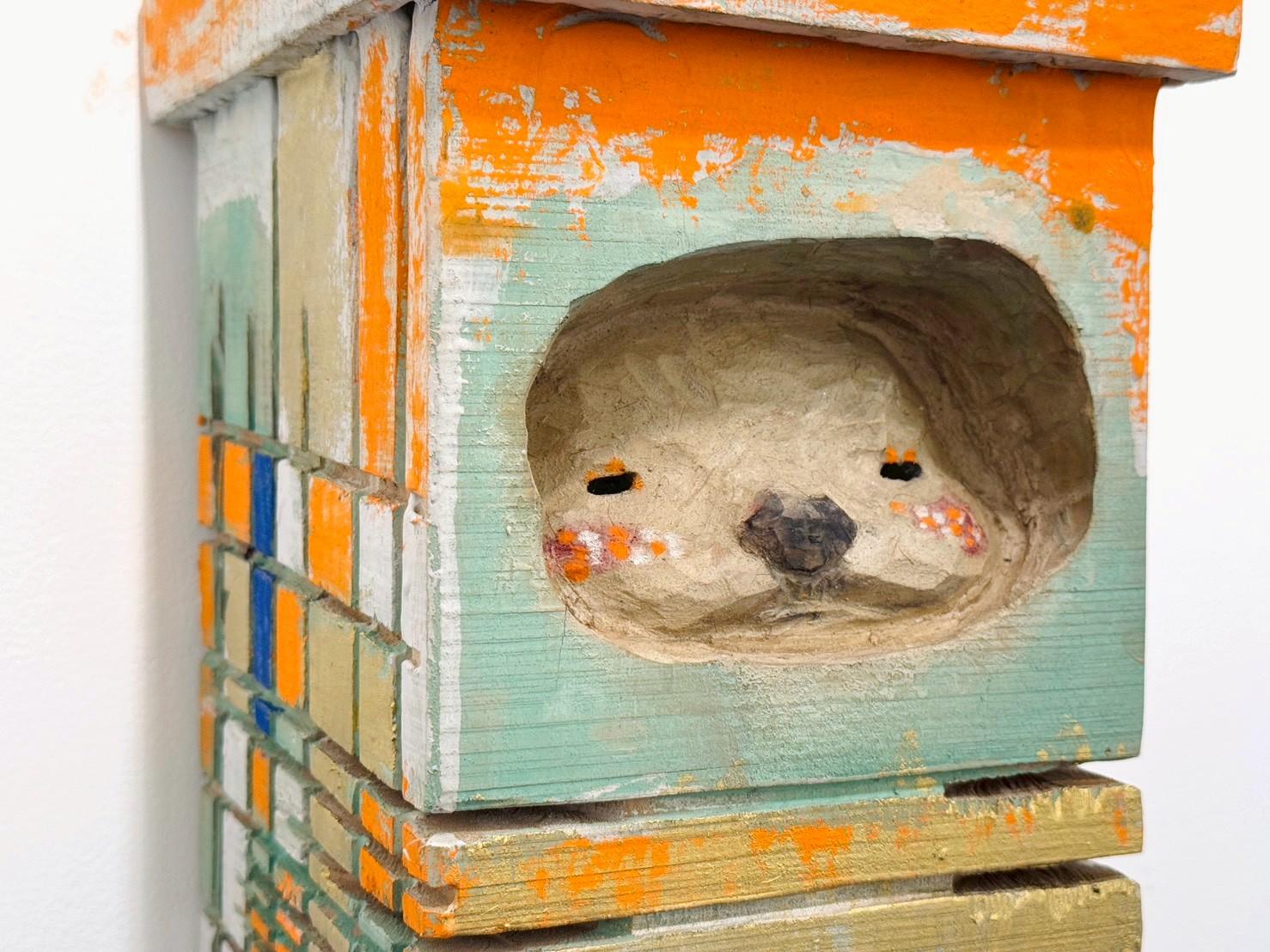 木頭在被雕刻後,仍散發著生命的氣息,而顏料則像是歲月在其上留下的記錄。