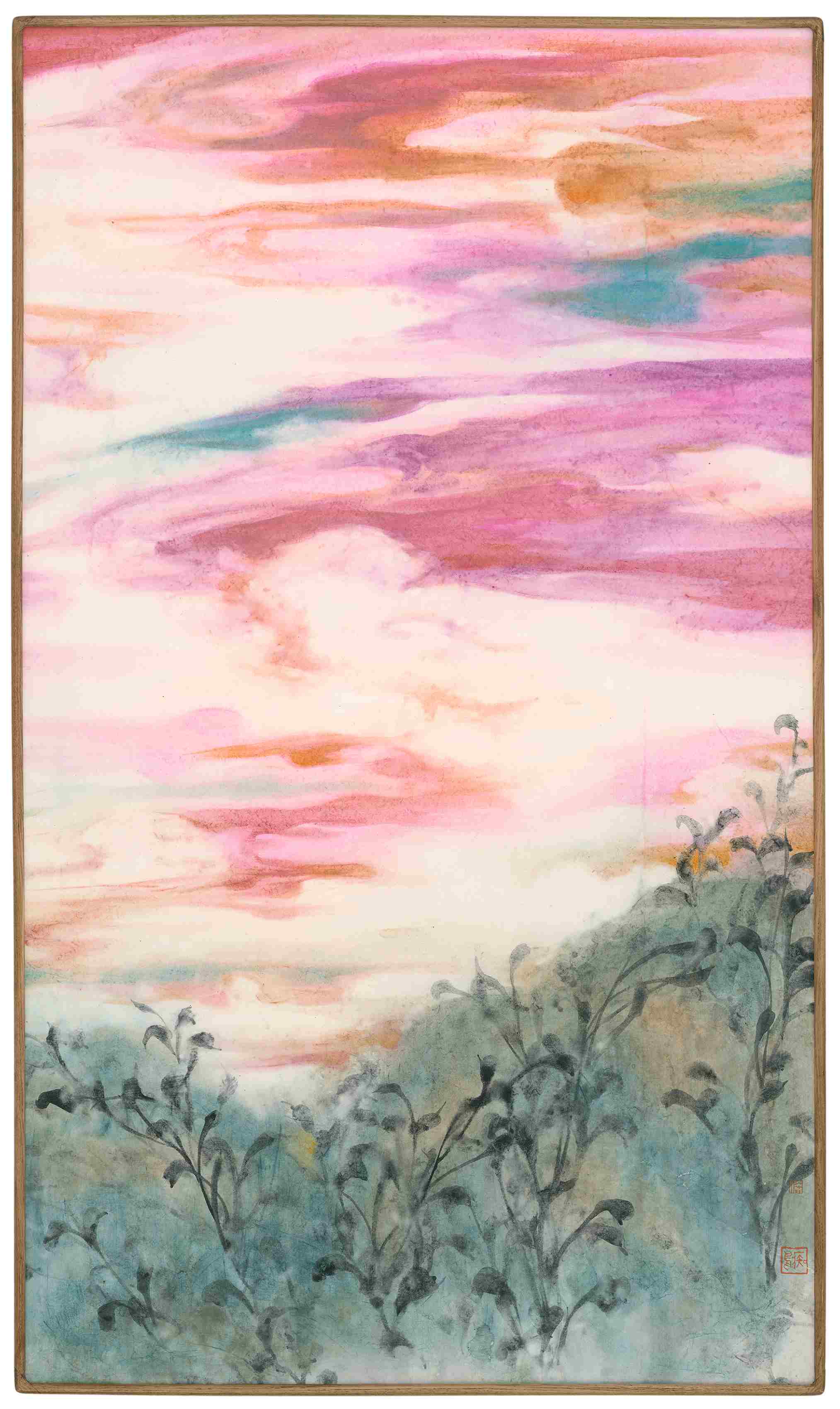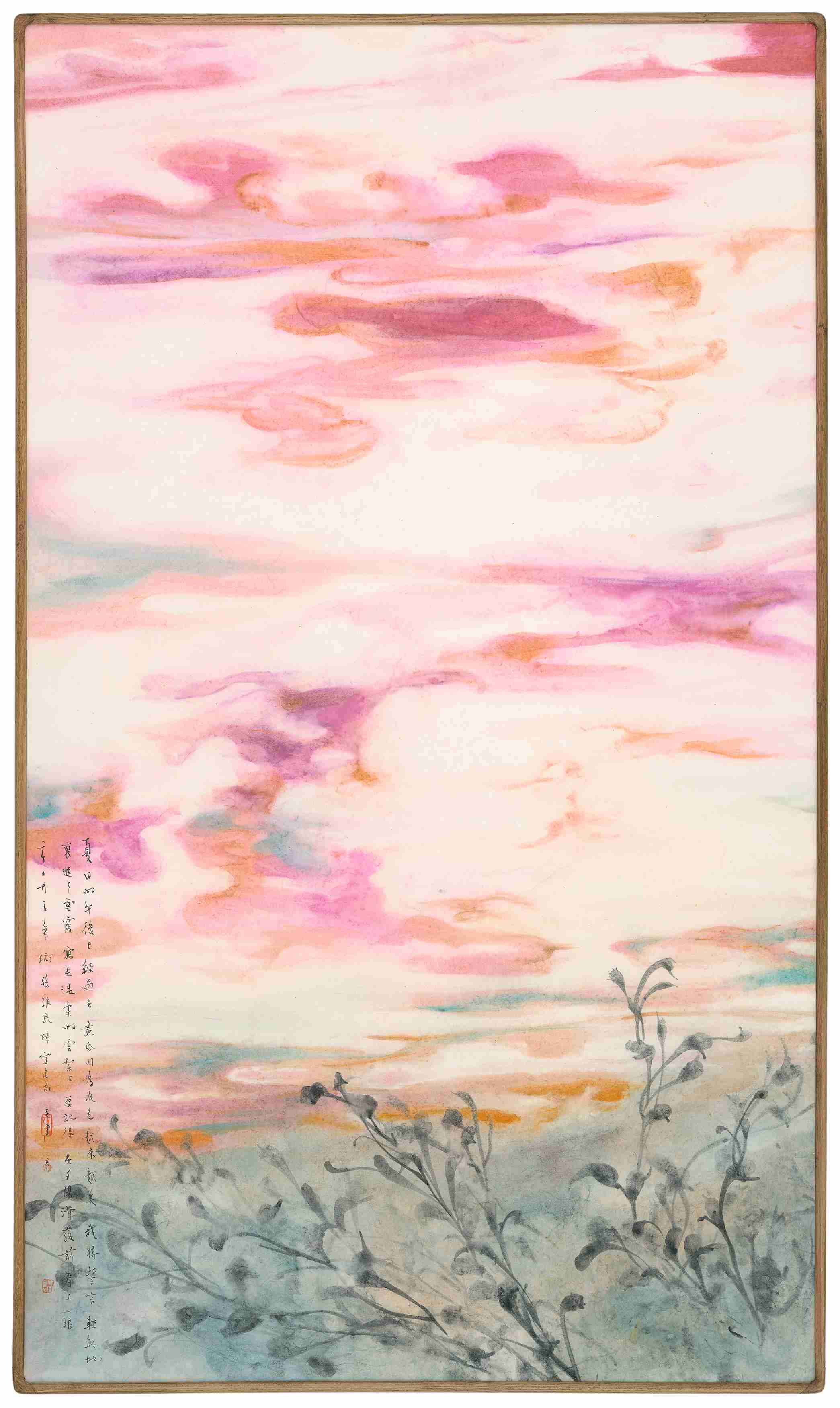 夏日的午後已經過去 黃昏因為夜色越來越美 我將誓言輕輕地裹進了雲霞 寫在溫柔的雲絮上 要記得 在夕陽滑落前 看上一眼 二千又廿五年摘孫維民陳宜建句天健作 鈐印:張、天天有詩、竹圍裏、淡水人、痴鳥