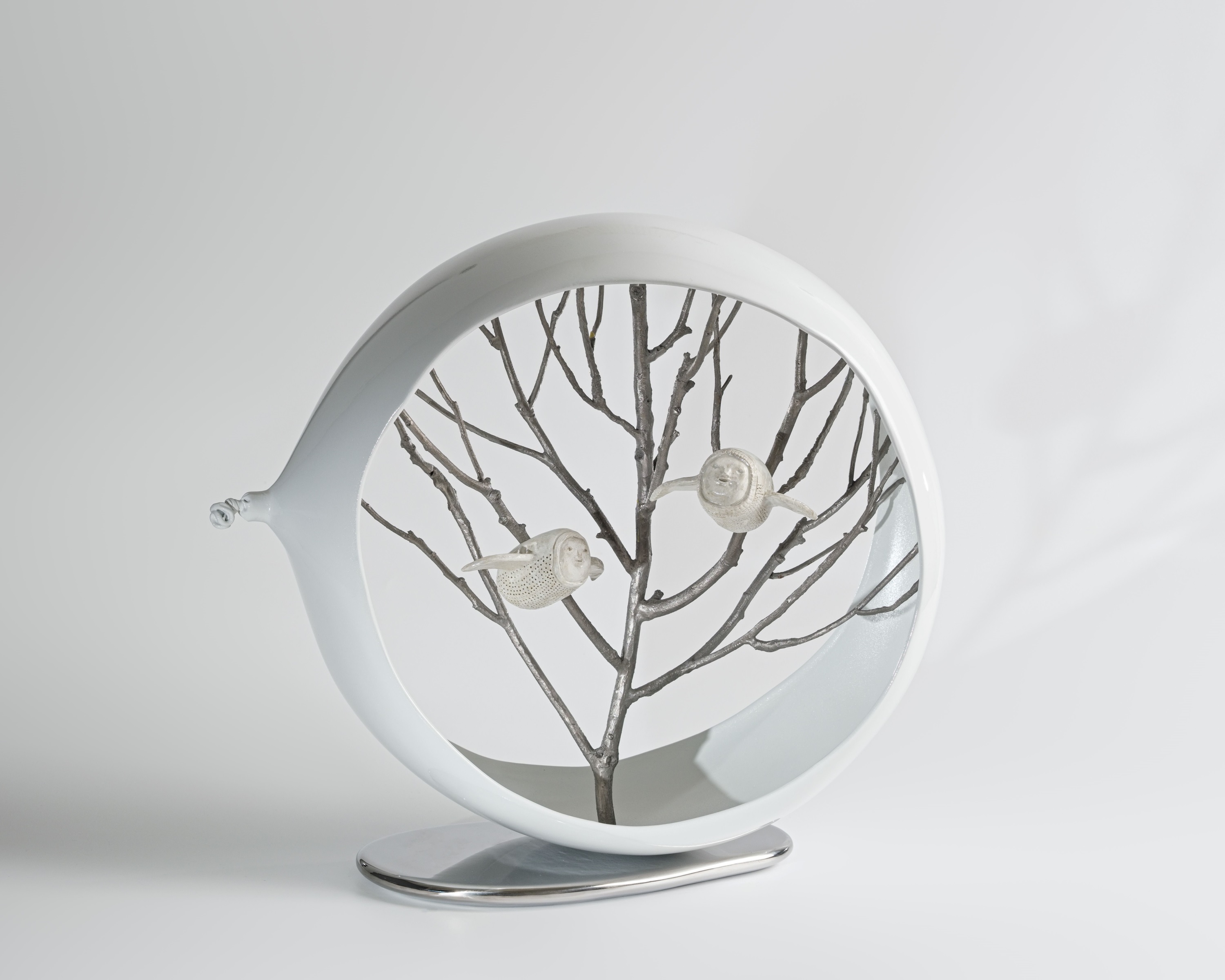 - 簡介: 〈吉普賽人的都市計畫-家3〉呈現出藝術家作為母親的生命現場。面對育兒與創作交織的日常,崔永嬿曾因多重身分而感到焦慮與混亂。然而在陪伴孩子的過程中,她逐漸明白,這一切其實從未分離。孩子的遊戲、生活的瑣碎,並非對創作的干擾,反而早已悄悄成為作品的一部分。這件作品如同一位新生的母親,在疲憊與豐足交錯中,重新整理羽翼、整裝待發的狀態。環繞的森林枝椏與兩隻飛鳥,是兩個生命的新生,一個是孩子的,一個是如同新生的母親,跟隨著孩子再次一起重新體驗到生命的單純、清新與美好。當重整好羽翅時,便能再次從森林中出發,面對自己的新生,展翅翱翔。