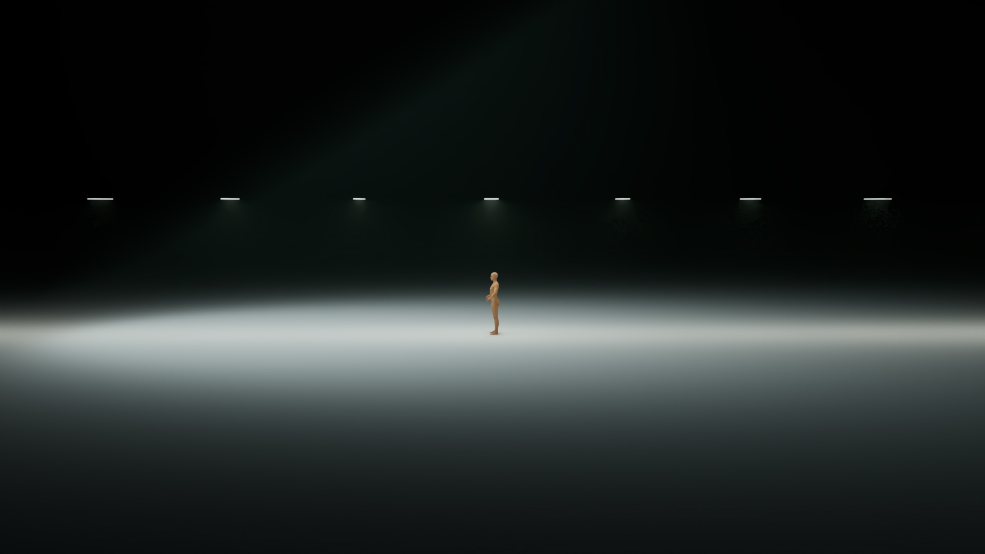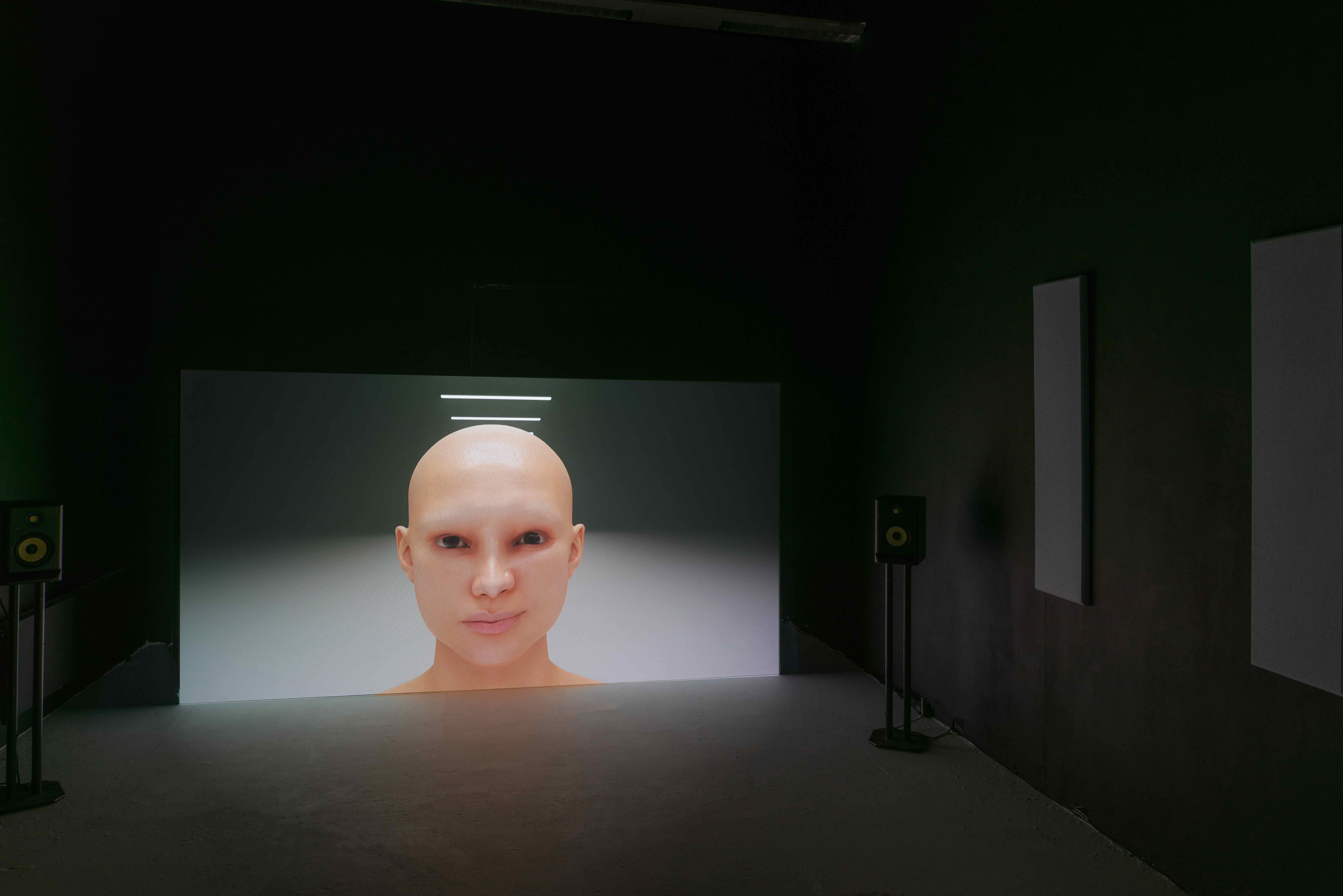 〈序曲〉作為系列的開場篇章,描繪一個賽博格從被動控制中甦醒、意識萌發的瞬間。觀者被置於這具數位身體之中,重新想像賽博格的誕生,在一個尚未被完全定義的灰階建模空間,與其創造者展開一場對主體性與存在意義的試探對話。這位創造者象徵系統性控制的源頭⸺不論是科技父權、語言機制或是數據分類邏輯。賽博格則以挑釁、戲謔、錯位的姿態回應這些詢問,不再只是受控的對象,而是主體性的生成者。聲音在其中扮演建構空間與情緒邏輯的角色,機械節奏與低頻震動模擬出甦醒的感知回路,使觀者能身歷其境地感受到數位主體在意識誕生之際的摩擦與不適。