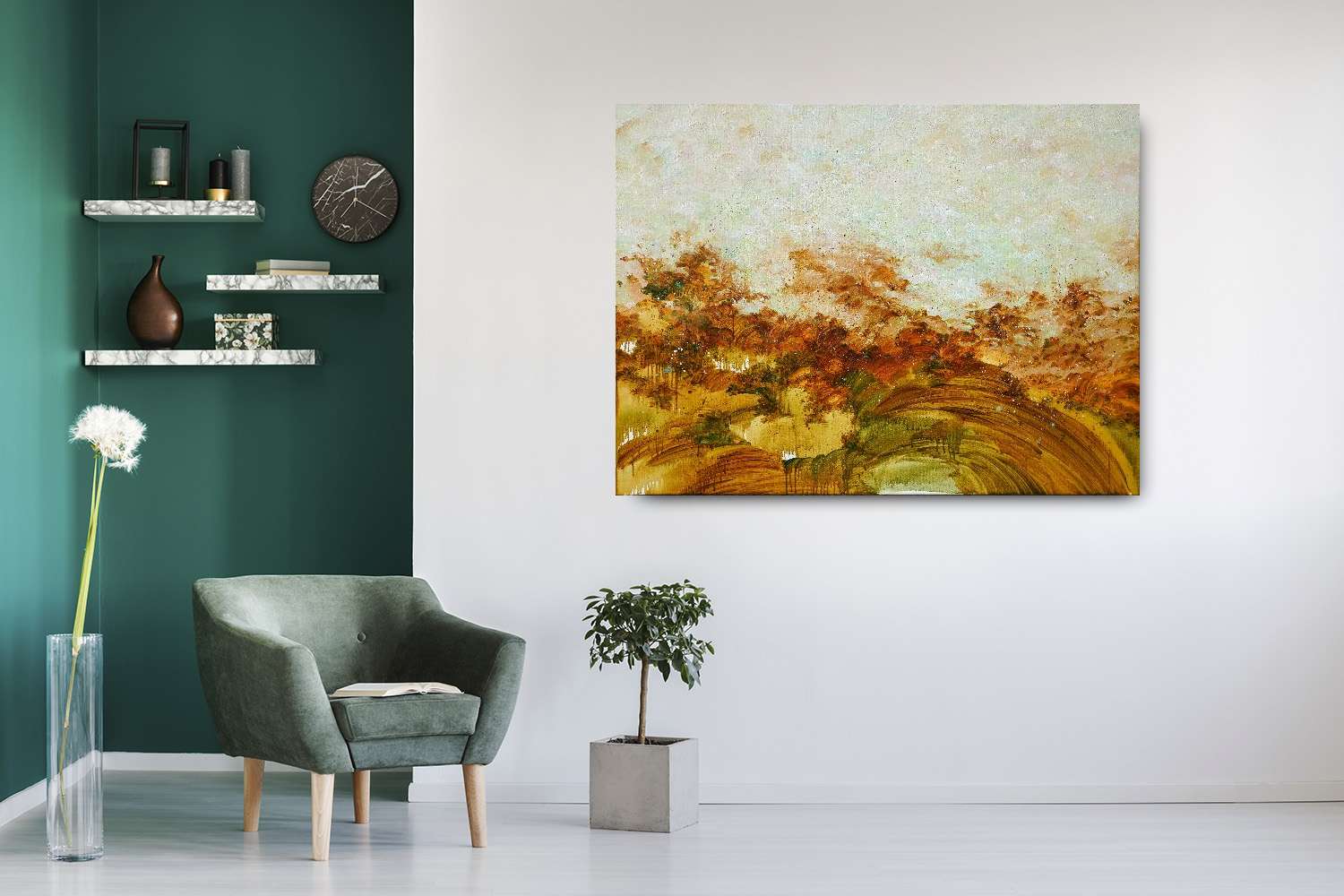 - 簡介: 黃品玲將繪畫視為一種能容納記憶與想像的容器。透過畫筆,她創造出能夠讓精神自由遊走的空間——那些不存在於現實地圖上的風景,卻在觀看與感受中,構築出一處處可以暫時安放自我的所在。這些畫面既是她的精神棲地,也邀請觀者一同進入,經歷自身的投射與共鳴。 作品〈柔軟之地 A Place to Soften〉便是這樣一幅描繪心理狀態的風景。畫面如同心靈的棲息地,輕柔的筆觸與溫潤的色彩交織成一種無形的安全感,宛如身體躺在世界上最柔軟的床鋪,內在最脆弱的部分被輕柔包覆。思緒在畫中一縷一縷地鬆開,化為柔和而寧靜的色彩。這幅作品不只是視覺上的風景,更是一種情感的體驗,是對於溫柔、放鬆與自我照顧的深層描繪。