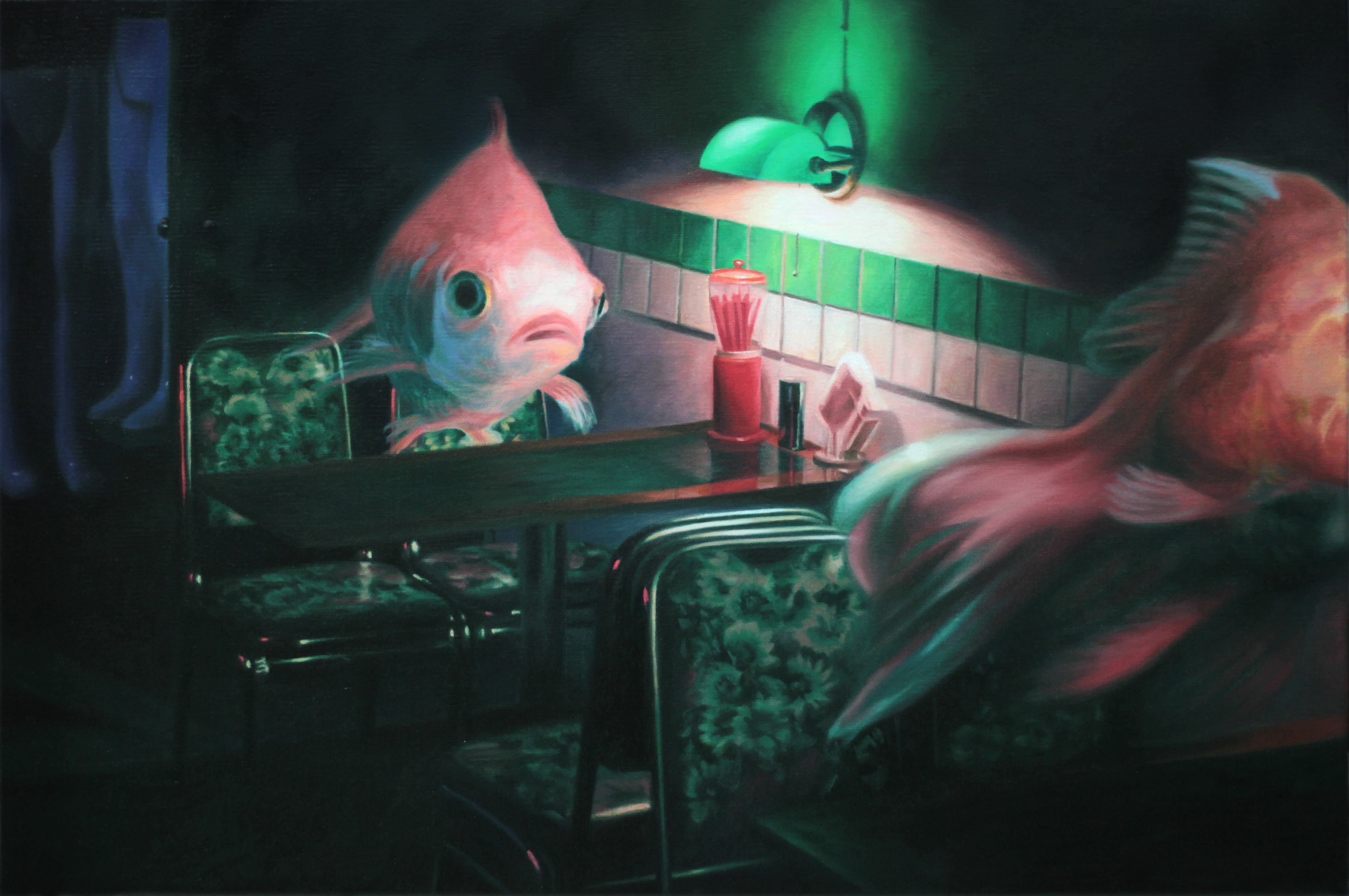 在藝術家的作品中,金魚是觀察這個世界的觀察者也象徵著這個都市的任何一個人,成為了寄居在這個都市的旅人的符號。金魚是漂流的動物,喪失了自主性,只能隨著主人在水缸中生存。金魚可以從一個角落悠遊地游到另一個角落,從一個水缸被換到另一個水缸,就像人從某座城市來到另一座城市漂流,這樣的狀態讓藝術家想起自己,曾經隻身到另一個都市生活的經驗。
