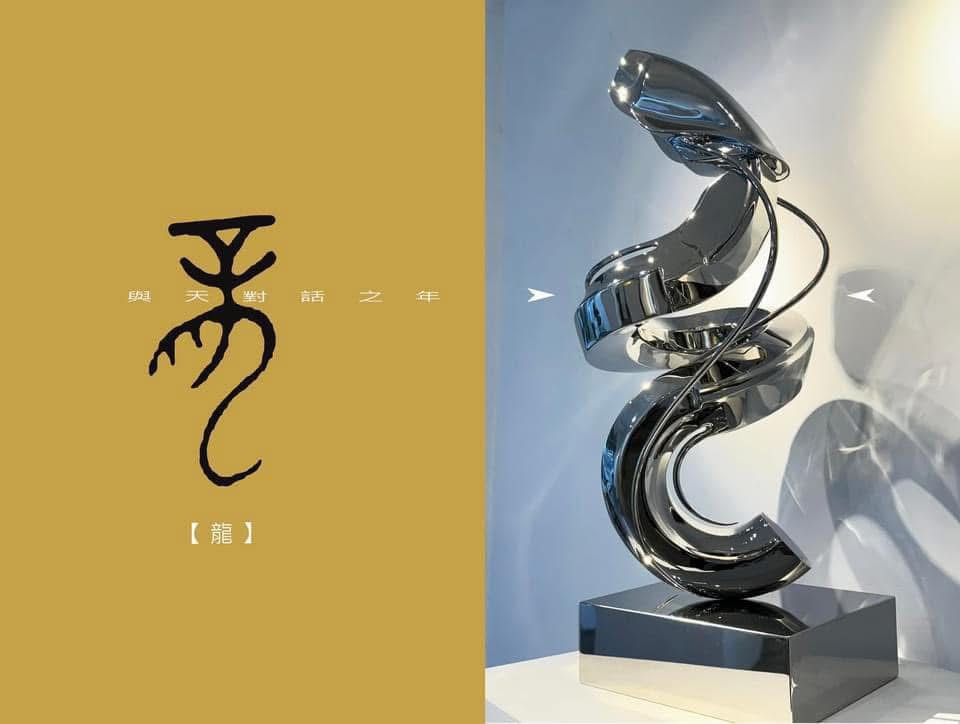 Agi 的「生肖雕塑」是充滿生命祝福的符號美學。 在華人的文化裡,龍,是富有神奇能力的傳奇,因此,2024 龍年作品「無境」Boundless,Agi引用遠古時代,皇帝專用的鐘鼎文:「龍」字,簡化為簡潔流暢的當代線條 。意指:跨越疆界與極限的力量。The power to cross boundaries and limits.