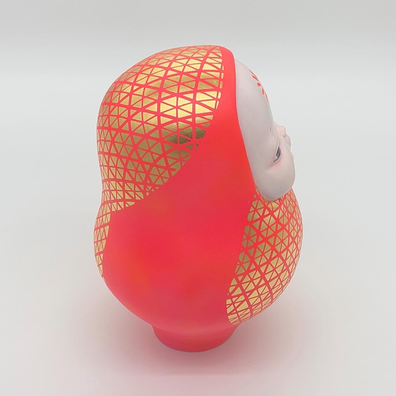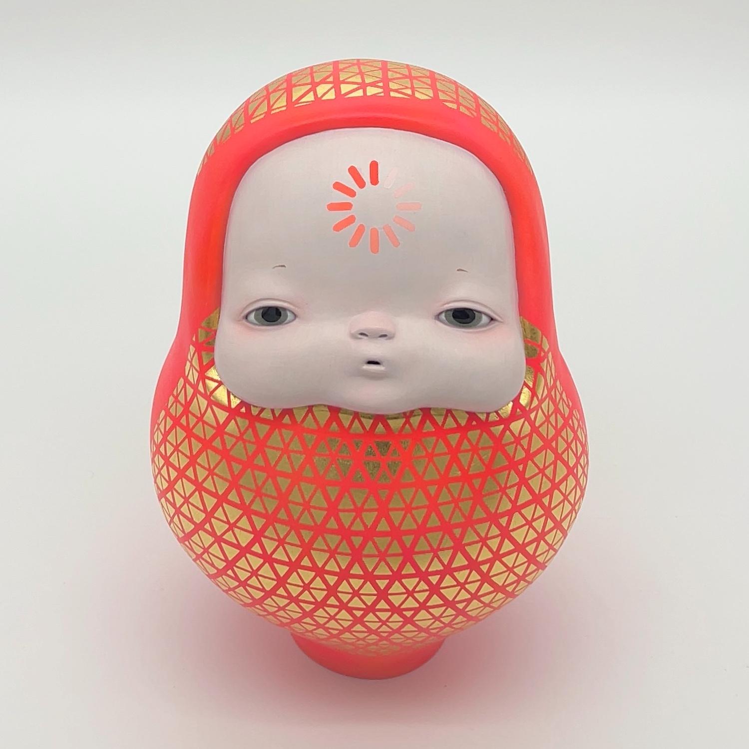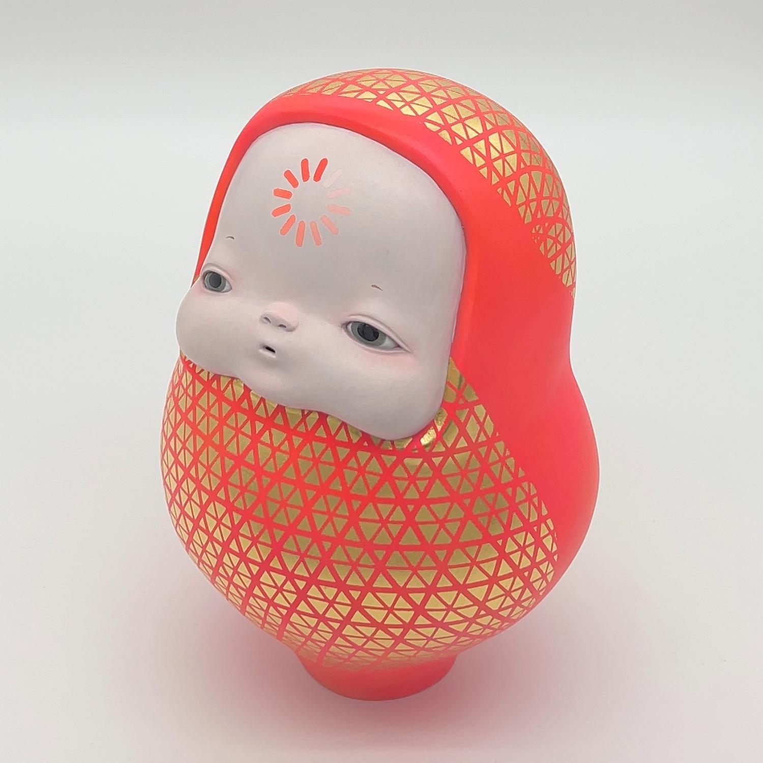 - 簡介:                            在日本,達摩作為吉祥物廣為人知,原本象徵著「即使倒下也會再度站起」的復原力。 然而,在我的作品中,達摩以模糊的表情靜靜仰望。額頭上的讀取圖示,顯示它正在處理某些未完成的事物。 這是對「未完成狀態」的肯定,在一個追求完美的世界裡,保有不完整與搖曳本身就是希望。 願望不在於形式的整齊,而在於此時此刻,於不確定的存在中仍然閃爍的希望。