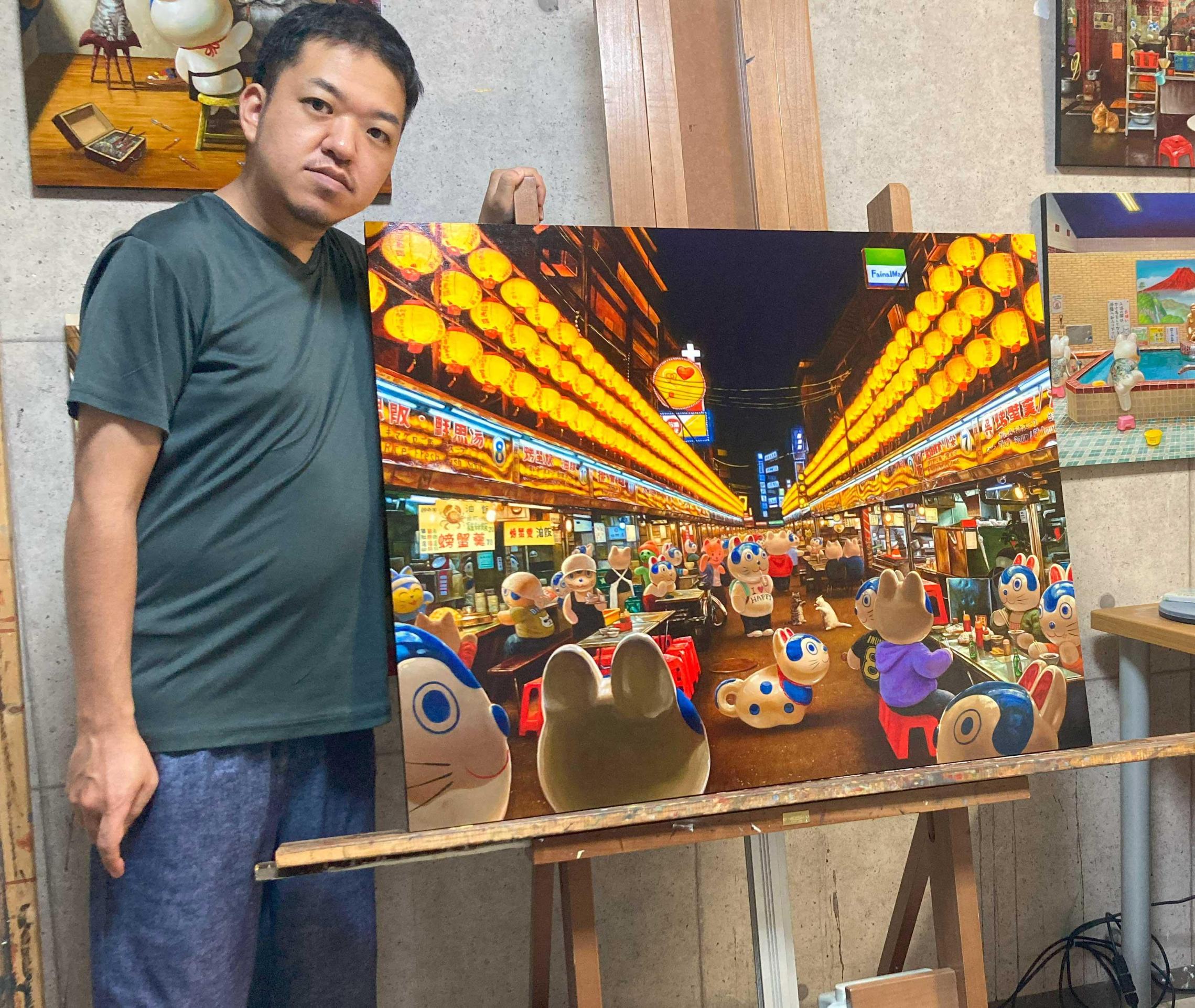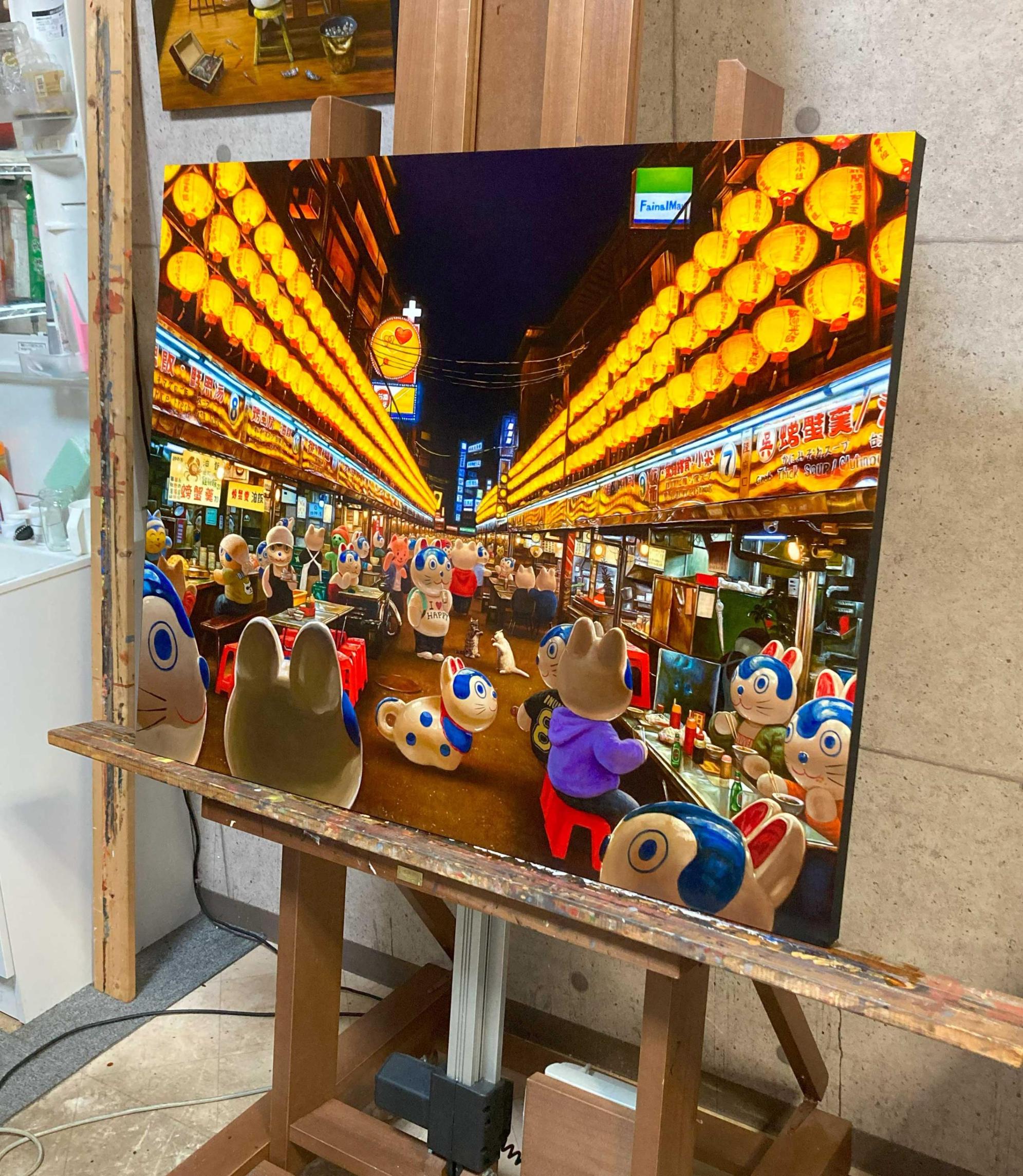明亮的黃燈籠在夜裡閃耀。隨著黑夜降臨,人們彷彿受某種無形力量吸引而聚集。店家林立,讓夜晚如同節慶般熱鬧。人群的熱情使整個場所宛如能量場。然而,當目光轉向其中的個體時,他們各自的境遇與故事便隱約浮現。